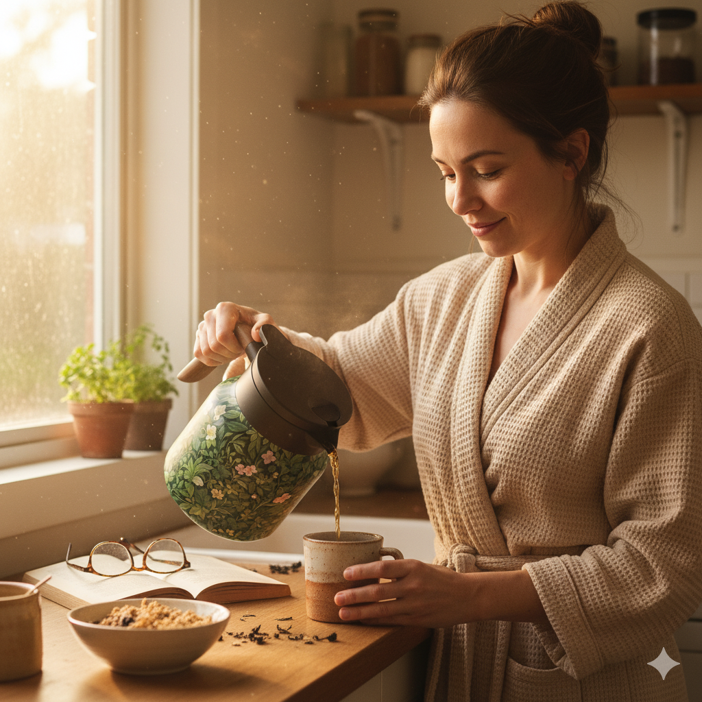 Inspired by morning calm and floral porcelain from vintage cafés, the Garden Bloom Pause Pot was created to make stillness feel beautiful again. Each pattern tells a story — of quiet mornings, slow tea, and moments that linger.